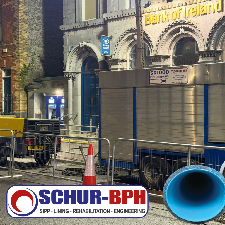 Equipment used: - SR1000 SIPP pipe lining rig - RFB pipe cleaning machine, one of our next gen machines, shorter in length and more powerful - A newly designed umbilical hose pusher - Water jetting system - Our AVOS system